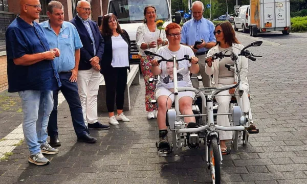 Op deze fiets zit je naast elkaar: de bestuurder heeft de controle, de passagier kan desgewenst meetrappen. Dankzij voorzieningen zoals een draaibare stoel, voetfixatie en zwenkbare voetenplaat is de fiets ook geschikt voor mensen met spasme of verlamming.